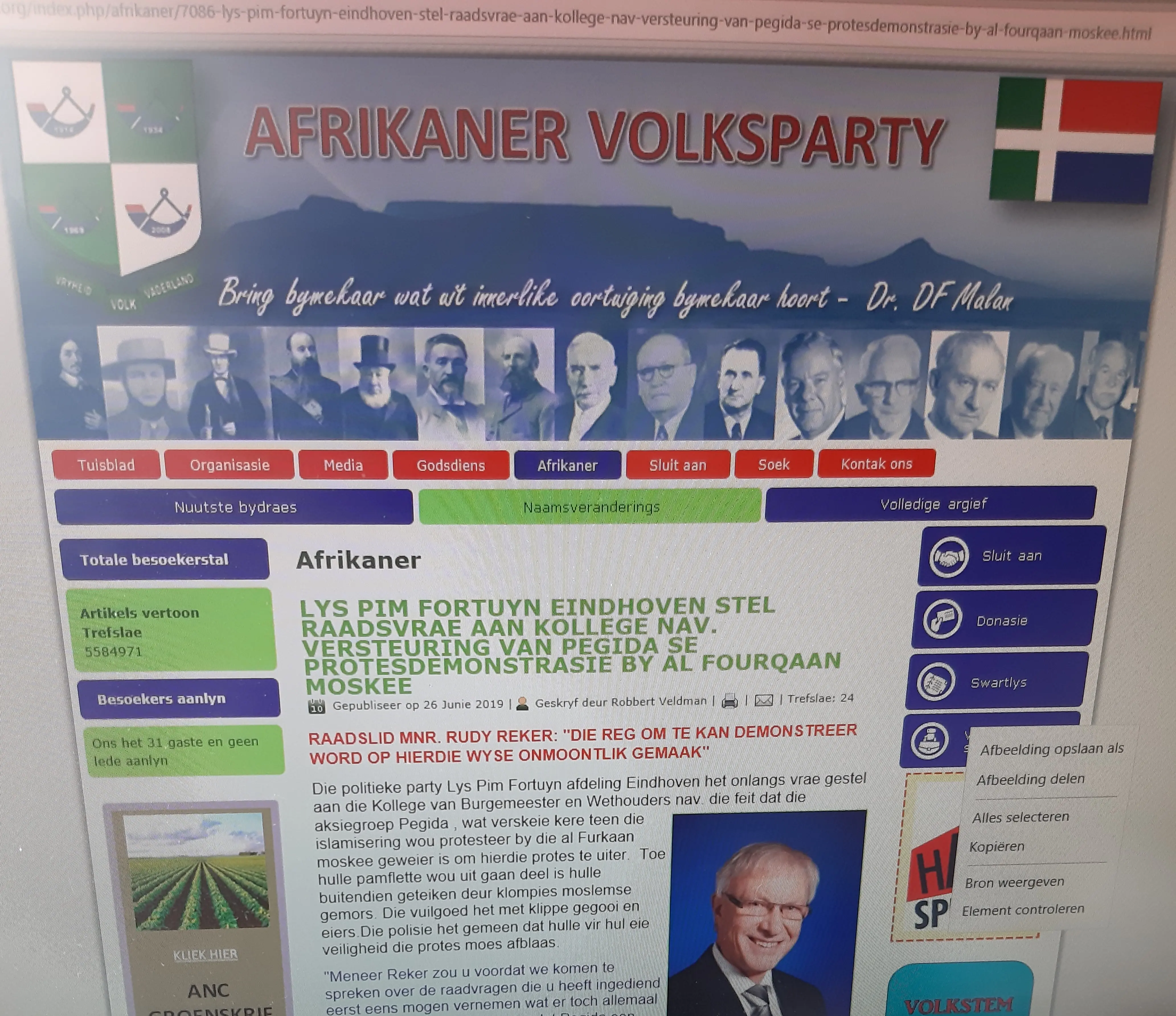 Die politieke party Lys Pim Fortuyn afdeling Eindhoven het onlangs vrae gestel aan die Kollege van Burgemeester en Wethouders nav. die feit dat die aksiegroep Pegida , wat verskeie kere teen die islamisering wou protesteer by die al Furkaan moskee geweier is om hierdie protes te uiter. Toe hulle pamflette wou uit gaan deel is hulle buitendien geteiken deur klompies moslemse gemors. Die vuilgoed het met klippe gegooi en eiers.Die polisie het gemeen dat hulle vir hul eie veiligheid die protes moes afblaas.