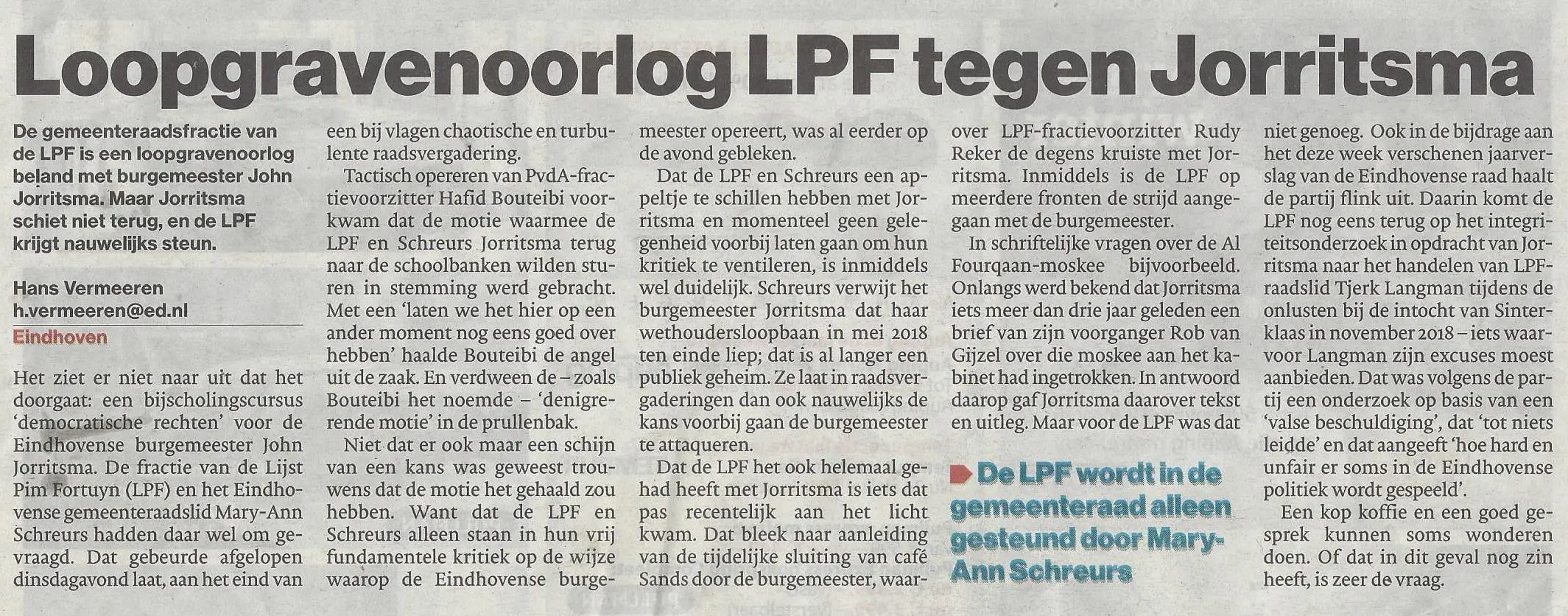 ED 31/01/20 Loopgravenoorlog LPF tegen Jorritsma